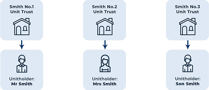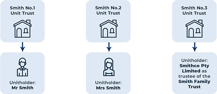 The Smith Discretionary Trust owns 3 properties with different cost bases and market values. It is desirable to separate the 3 properties so that each property is owned by a separate unit trust. Multiple land tax thresholds may be available.