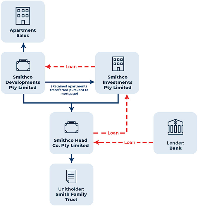 MGS Private can arrange to structure a property development whereby retained property may be moved to another entity and protected.