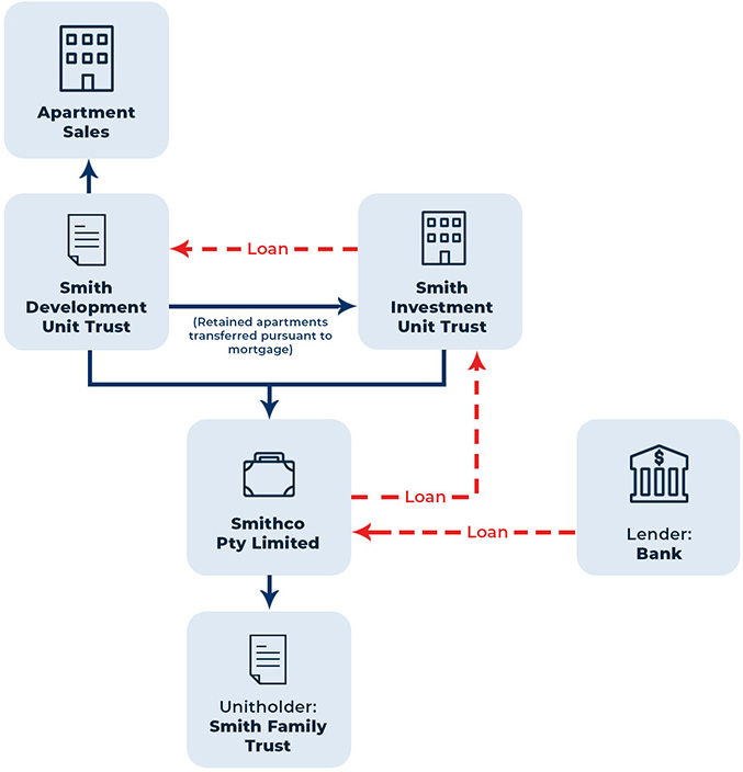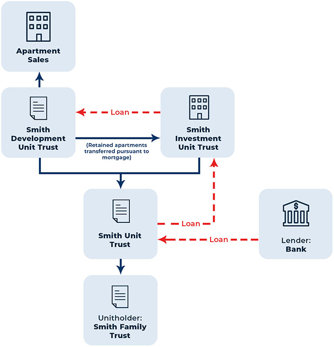 In this example the entities are all unit trusts and therefore there is no ability to consolidate under Part 3-90 of the ITAA97. The advantage of a non-consolidated structure is that any future disposal by the Smith Investment Unit Trust may attract the CGT discount contained in Subdivision 115-A of the ITAA97. The capital versus income considerations in relation to the application of Subdivision 126-G of the ITAA97 may apply.