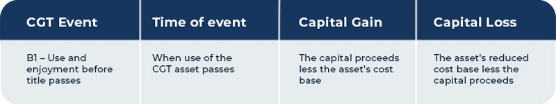 If there is a contract of sale, the CGT event happens when you enter into the contract. For example, if you sell a house, the CGT event happens on the date of the contract, not when you settle.