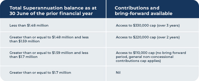 If eligible, when you make contributions greater than the annual cap, you automatically gain access to future year caps. This is known as the ‘bring-forward’ option.